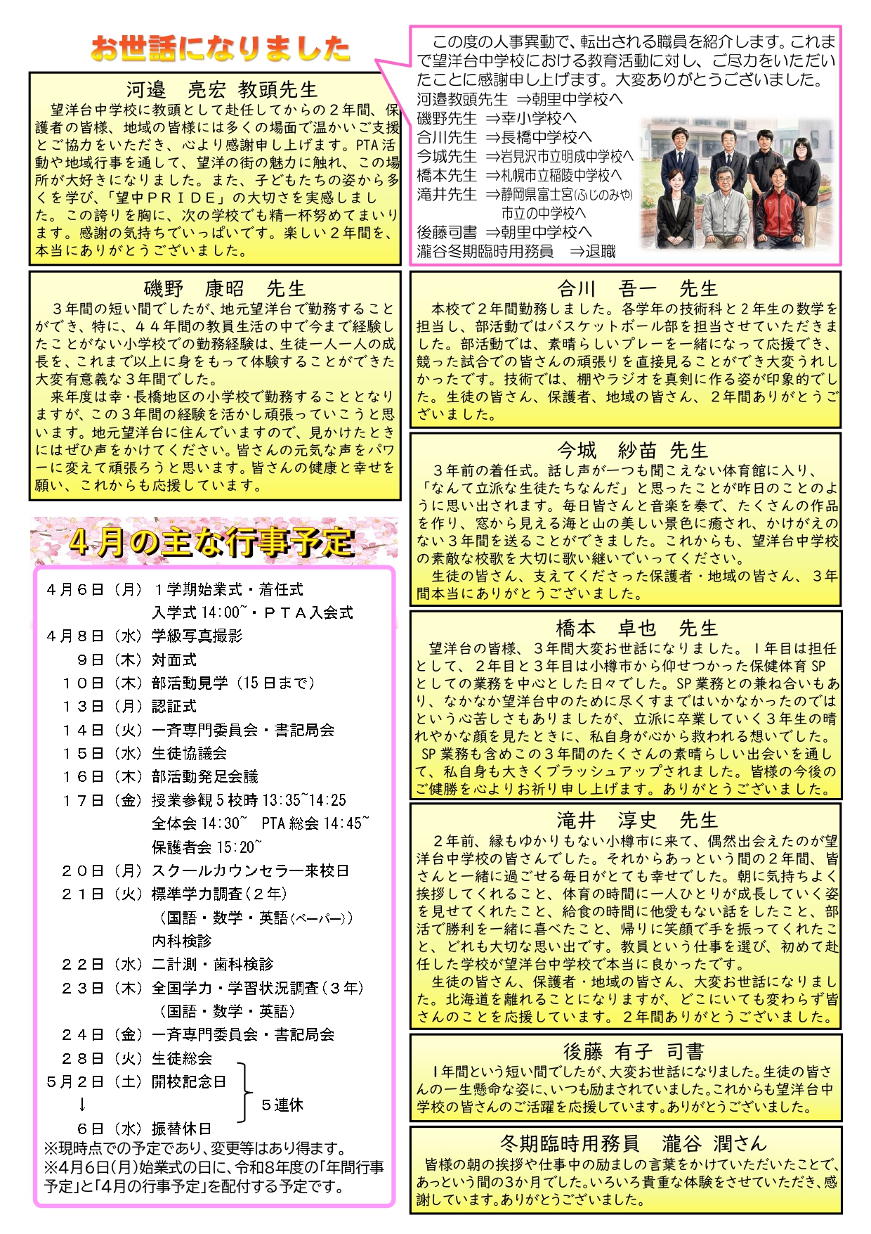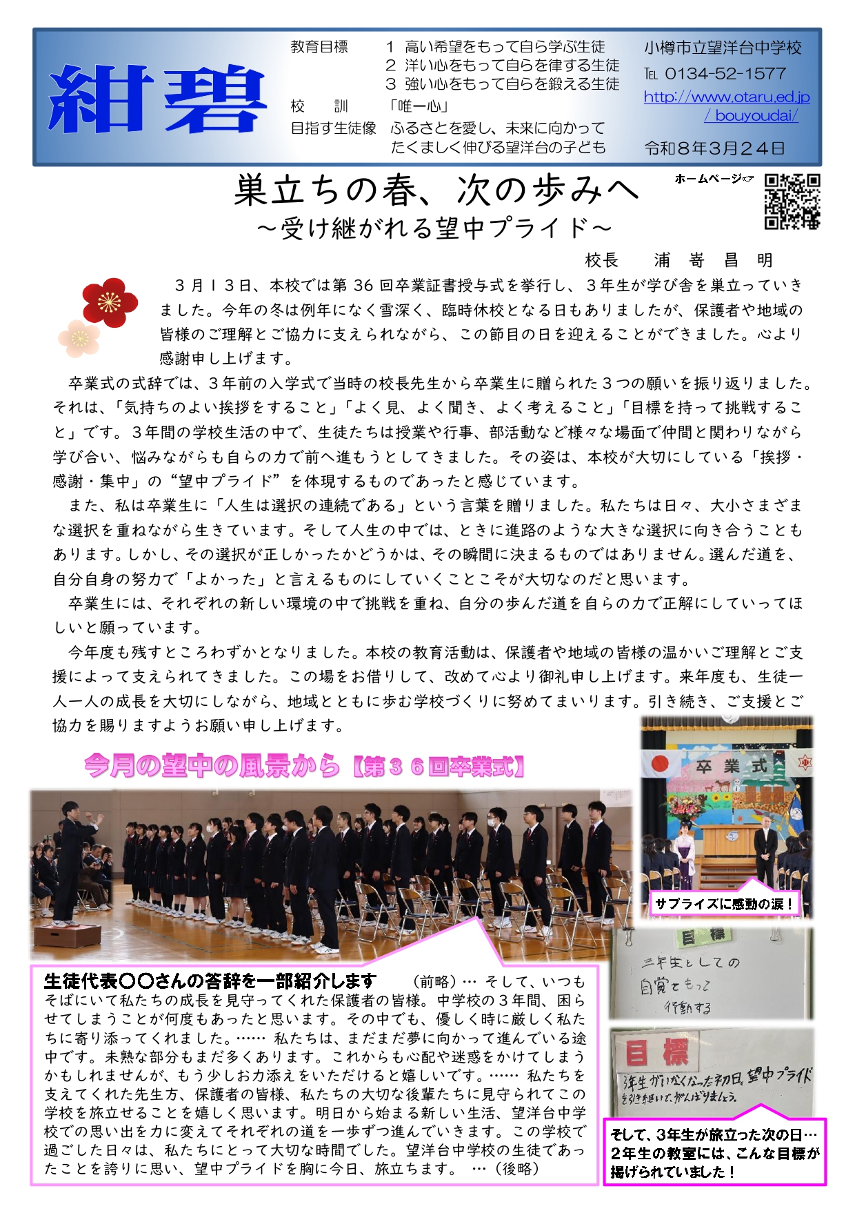 また、本校教育活動にご理解とご協力を賜り、誠にありがとうございました。