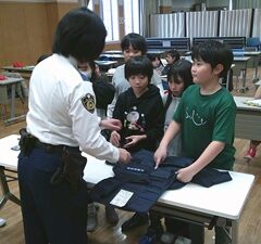警察署見学3年生 2025年11月5日 3年生が社会科の学習で小樽警察署に見学に行きました。「一番大変な仕事は何ですか?」「1年間でどのくらい事件や事故がありましたか?」など、警察署の役割や仕事についてたくさん質問をすることができました。また、実際にパトロールカーに乗ったり、防刃ベストや警棒を触ったりと学習を深めることができました。 戻る