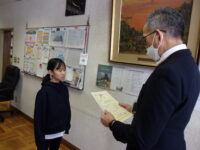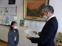 校長室にて、生徒が応募への実施されていた各種表彰状の贈呈式を行いました。これまでの努力や成果が認められ、賞状を受け取った生徒たちは誇らしげな表情を見せていました。受賞された皆さん、本当におめでとうございます!