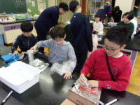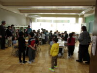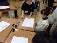 ♦ 2月10日に、保護者説明会と新1年生体験入学を行いました。保護者の皆様には、学校の生活、学校の教育活動のねらい、入学式までに用意するもの、生活習慣の指導など、入学前に不安なことがなくなるように説明いたしました。教室では、現1年生が優しく丁寧に新1年生に除菌シートで糸をこするとコケコッコーとなる工作を作りました。現1年生は、みんなお兄さんお姉さんとなり、新1年生が困っていないか積極的に声をかけていました。