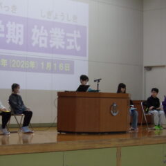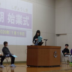 始業式の始まり。冬休みを終え、子どもたちは元気いっぱいに登校し、教室には久しぶりに会う友だちとの笑顔や楽しそうな声があふれていました。始めに各学級で、まず「冬休みの思い出」について発表。家族で出かけた場所の話や、お正月の出来事、雪遊びや趣味に挑戦したことなど、一人ひとりが冬休みの楽しかった時間を嬉しそうに話していました。次に校長先生のお話で今回の冬休みのどう過ごしたか?を聞き、安全に気をつけ、自分から言われずに行動したか?何かに夢中で取り組む経験をしたのか?ということ、3学期は1年の締めくくりとして目当てを持つことが成長の近道だとし、相手を見て話を聞く。廊下は歩いて移動。もめごとになったらどうするか?人を高め合う力のため大切なことは?という4点を目標にしてほしいとお話していました。いよいよ3学期のスタートです。子どもたち一人ひとりが、充実した毎日を過ごしていけるよう、学校全体で支えていきます。