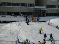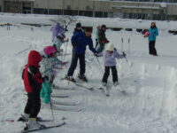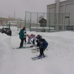 ♦ 2年生スキーを学校グラウンドで行いました。少しザクザクな雪でしたが、天気が良く気持ちよくスキー学習を終えました。また、サポーターの方のおかげでスムーズに授業を終えることができました。ありがとうございました。
