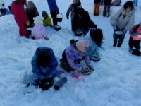 ♦ 小樽雪あかりの路が2月8日(土)から15日(土)の期間に開催されます。稲穂小PTAでも、地域を盛り上げるためにバケツキャンドルの灯りをともす活動「PTA主催 地域ふれあいイベント 稲穂小学校 小樽雪あかりの路 2025」を行いました。まず、バケツに筒を刺して雪を詰め、筒を抜いて逆さまにしてバケツキャンドルを作りました。子どもたちは楽しみながらたくさんのバケツキャンドルを作りました。その後、小樽政寿司さんの協力のもと、政寿司特製「豚汁」と保護者の皆様に握っていただいた「おにぎり」の提供を行いました。子どもたちは「美味しい」と言って何回もおかわりをしていました。最後に、ロウソクを灯して、みんなで完成したバケツキャンドルを見ました。PTA事務局の皆様、保護者の皆様、ありがとうございました。