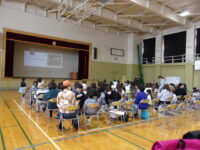 その後、体育館に集合し、研究協議を行いました。授業の振り返りや意見交換を通して、よりよい授業づくりについて考える時間となりました。協議後に北海道教育庁後志教育局長 岡内様、同庁 教育指導班主査 大内様、小樽市教育委員会教育支援室主査 平口山様よりご助言を頂きました。その後、特別教育講演会として 北海道教育大学大学院 教育学研究科高度教職実践専攻 准教授 川俣 智路様より「子どもの主体的な学びを生み出す授業づくり」を講演して頂き、参加者は主体的な学びを促すためのUDLの授業とその工夫や実践について理解を深めました。ご参加いただいた皆様、ありがとうございました。大変多くの参加者と研修を深め合うことが出来ました。