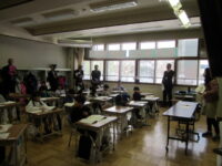 中休み・昼休み時間を使って、2年生の生徒が「かけ算の九九」の練習をしています。九九を上から順番「のぼり九九」下から順番「くだり九九」の2種類。正確かつ上手く言えると、先生のサイン・ハンコを貰えます。全部ハンコを貰えると「ラスボス」として校長先生の九九の難題を答えなくてはなりません!難しいけどみんな頑張って九九を覚えてください!