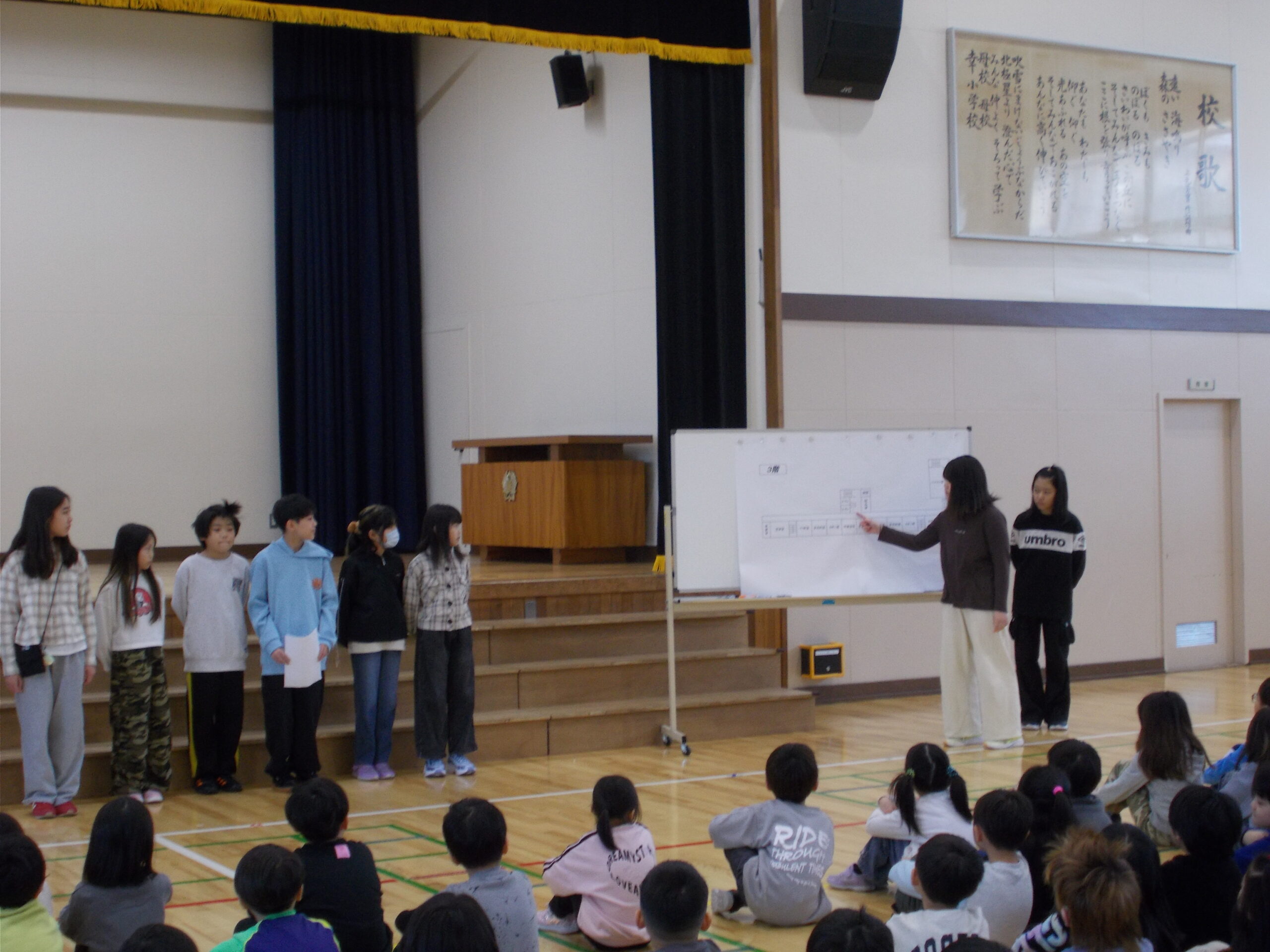 学校では、けがの防止に向けた取組を行っています。学校でけがをした場所や種類をアンケート調査し、その結果を全校朝会で紹介しました。児童会では、校内安全マップの取組を発表しました。一人一人が安全への意識をもち、学校生活を過ごしていきたいです。