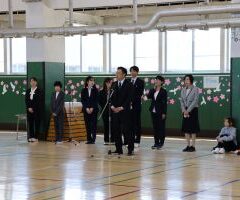 令和8年度がスタートしました 2026年4月17日 4月6日に令和8年度の着任式・始業式が行われました。 今年度、着任した職員の紹介と挨拶の後、児童会代表の歓迎の言葉がありました。 始業式では、校長から今年度目標にしてほしい「つづける子」についての話の後、全校で元気よく校歌をうたいました。 新しい年度のスタートを明るく元気に切ることができました。 戻る