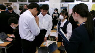 生徒たちは立地条件の異なる3つの地域で、持続可能なコンビニエンスストアを出店するために、消費者と労働者、客層、取り扱う商品等様々な角度から考え、自らの意見を交流しながら学習を深めました。