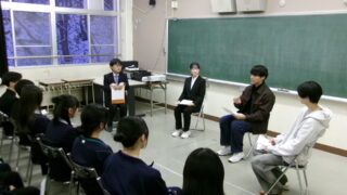 大学生によるトークセッション 2025年12月10日 大学生によるトークセッションを、本校学校運営協議会に企画していただき、 北翔大学と小樽商科大学から大学生を招いて行いました。 2・3年生24名の生徒が参加しました。 中学生の疑問や悩みなどについて、現役大学生からアドバイスをもらえる貴重な機会となりました。 とても充実した時間だったことが、生徒の表情からわかりました。 戻る