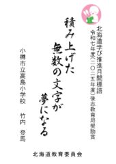 令和7年度、高島小学校6年児童の作品が後志教育局奨励賞に選出されました。標語のような取り組みが、全校的に広がることを期待しています。
