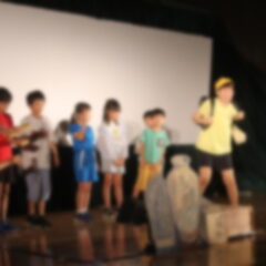 公演は、第一部の妖怪影絵劇『ゲゲゲの鬼太郎』(50分)と、第二部の不思議な音のワークショップ(20分)の2部構成でした。