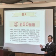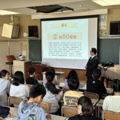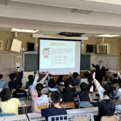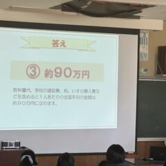授業では、日本の財政の仕組みや税金の種類などについて、クイズも交えながら楽しく学習しました。