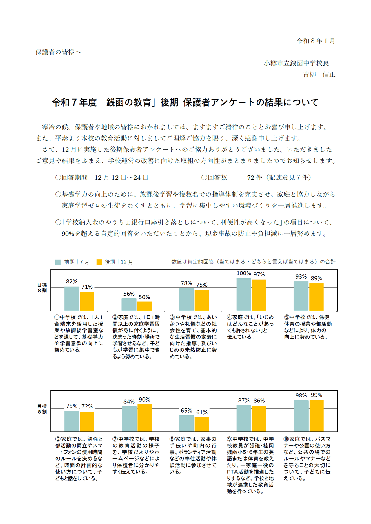 12月に実施した後期の保護者アンケートの結果がまとまりましたのでお知らせします。